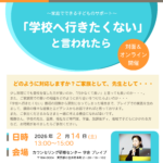 - 2月14日(土) 研修会開催「学校へ行きたくない」といわれたら※この企画は有料です。対面とZoomオンライン双方で行います。参加をご希望の方は、メール(brave@genp… 続きを読む: 2月14日(土) 研修会開催「学校へ行きたくない」といわれたら
